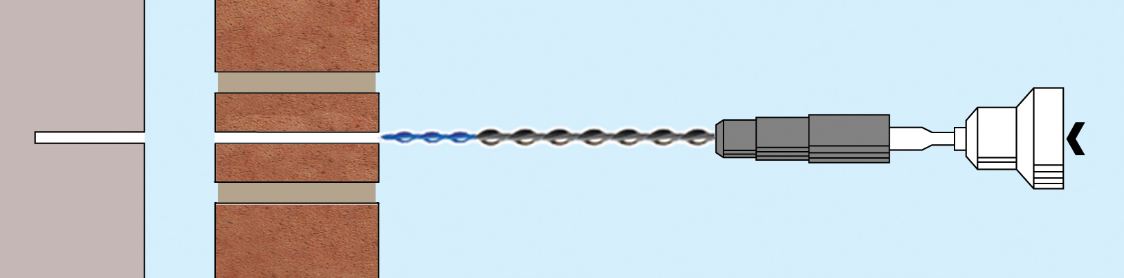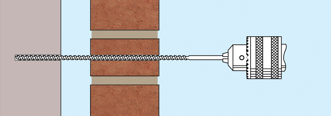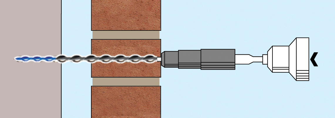 1. Drill small pilot hole using rotary percussion drill, 3-jaw-chuck type. Note: When used in a joint, the mortar must be of sufficient strength and on-site testing of its suitability is essential.