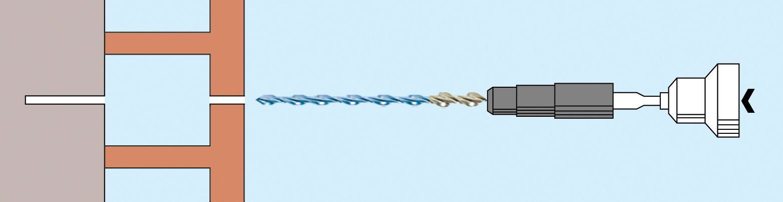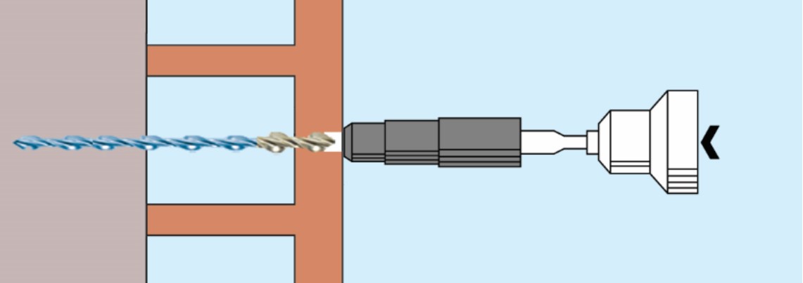 1. Drill a small pilot hole through the terracotta and into the backup material using a rotary percussion drill (3-jaw-chuck- type)