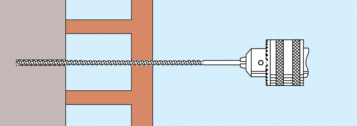 3. The tie is power driven into position (with SDS hammer drill) until the outer end of the tie is automatically recessed below the face of the terracotta. Make good the entry hole with matching materials. In thin walled terracotta, the tie may need to be left flush with the surface